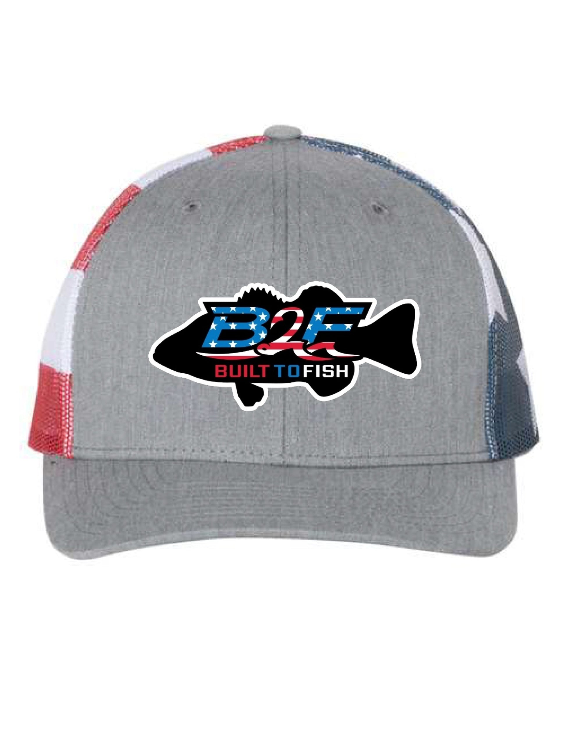 Heather Grey/ Stars & Stripes - Richardson Cap Printed Mesh